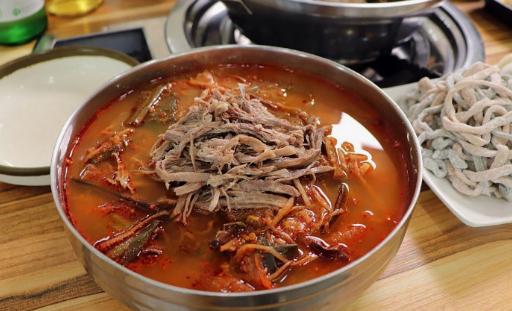 어른 입맛용 칼칼한 맛. 면 먼저 즐기고 난 뒤 공기밥을 말아 먹으면 사실상 육개장 한 그릇을 완성하는 구성입니다. 고기 양도 넉넉합니다.
