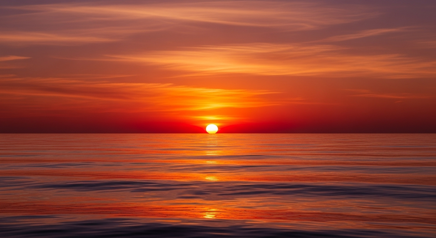 붉게 이글거리며 바다에 닿아 사라지기 직전의 태양은 하늘과 바다를 불타듯 붉게 물들였습니다. 태양은 금세 바다 아래로 잠기듯 사라졌지만, 붉은 빛은 한동안 하늘과 바다 위에 머물며 저를 바라보고 있는 듯했습니다.